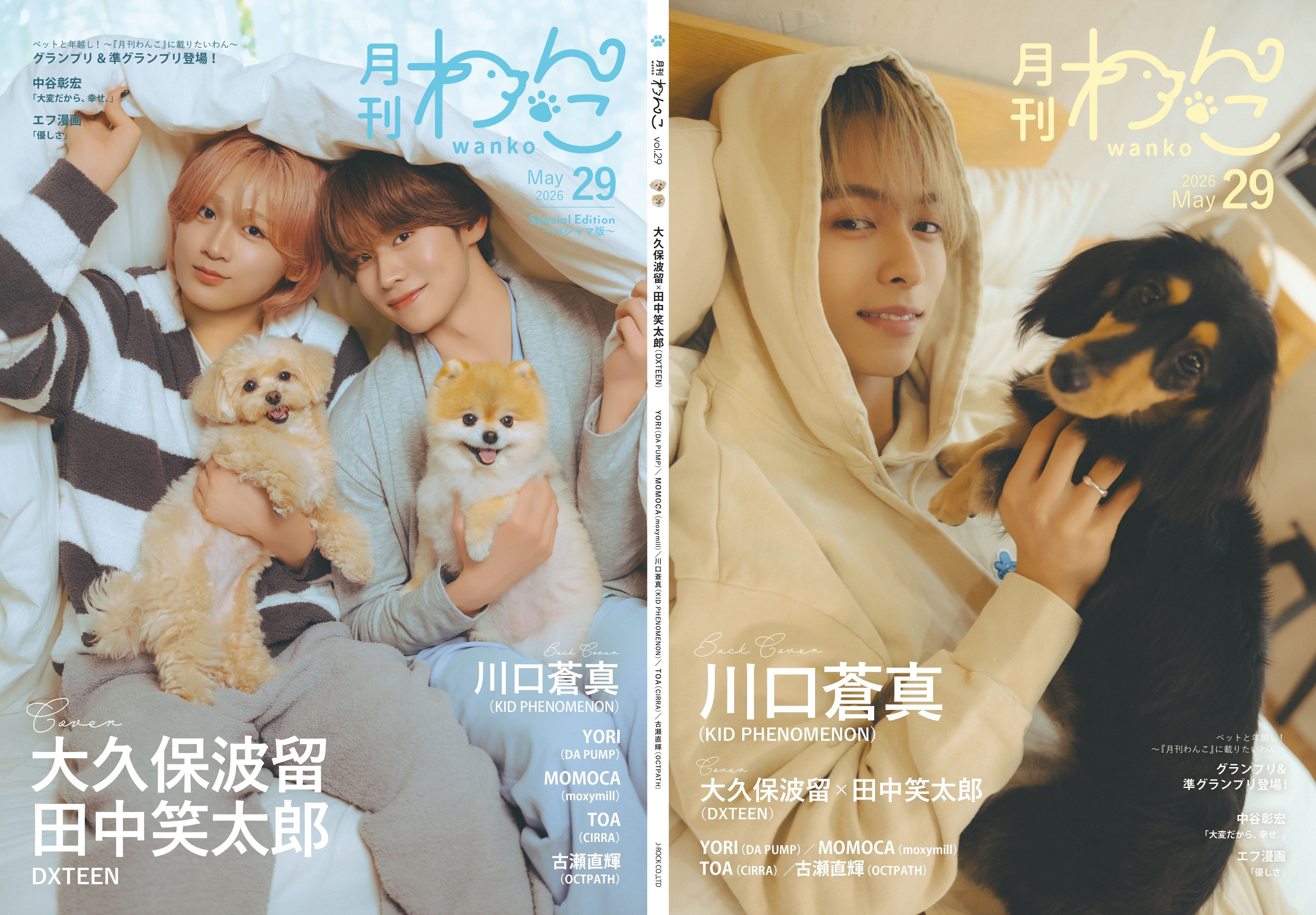 月刊わんこvol.29(Special Edition パジャマ版) 表紙巻頭特集:大久保波留・田中笑太郎(DXTEEN) /裏表紙:川口蒼真(KID PHENOMENON)